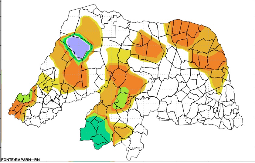 Já na região Central Potiguar, as cidades de São João do Sabugi, com 20,8 milímetros, e Florânia, com 18,6 milímetros, apresentaram os maiores volumes, segundo o boletim.