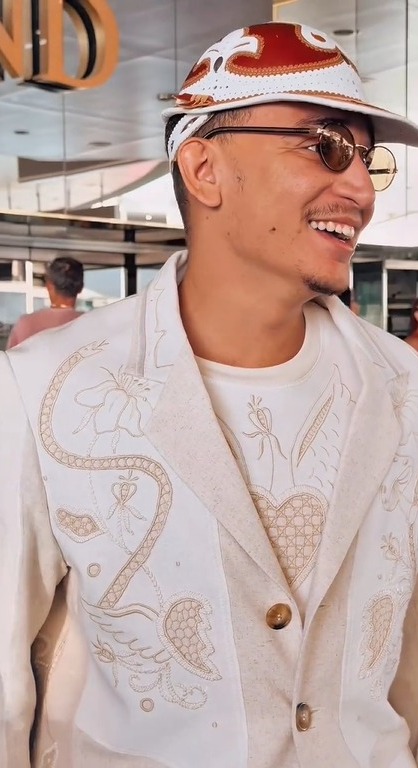 Os fios que nascem das mãos das bordadeiras de Timbaúba dos Batistas, no Seridó potiguar, cruzaram mais uma fronteira. Desta vez, chegaram ao palco da 26ª edição do Grammy Latino, na noite dessa quinta-feira (13), em Las Vegas. O pernambucano João Gomes, vencedor do prêmio de Melhor Álbum de Música de Raízes em Língua Portuguesa com o projeto Dominguinho, apareceu usando um conjunto de linho bordado pelas artesãs da região, em parceria com a estilista Helô Rocha, o stylist Pedro Sales e a Riachuelo.