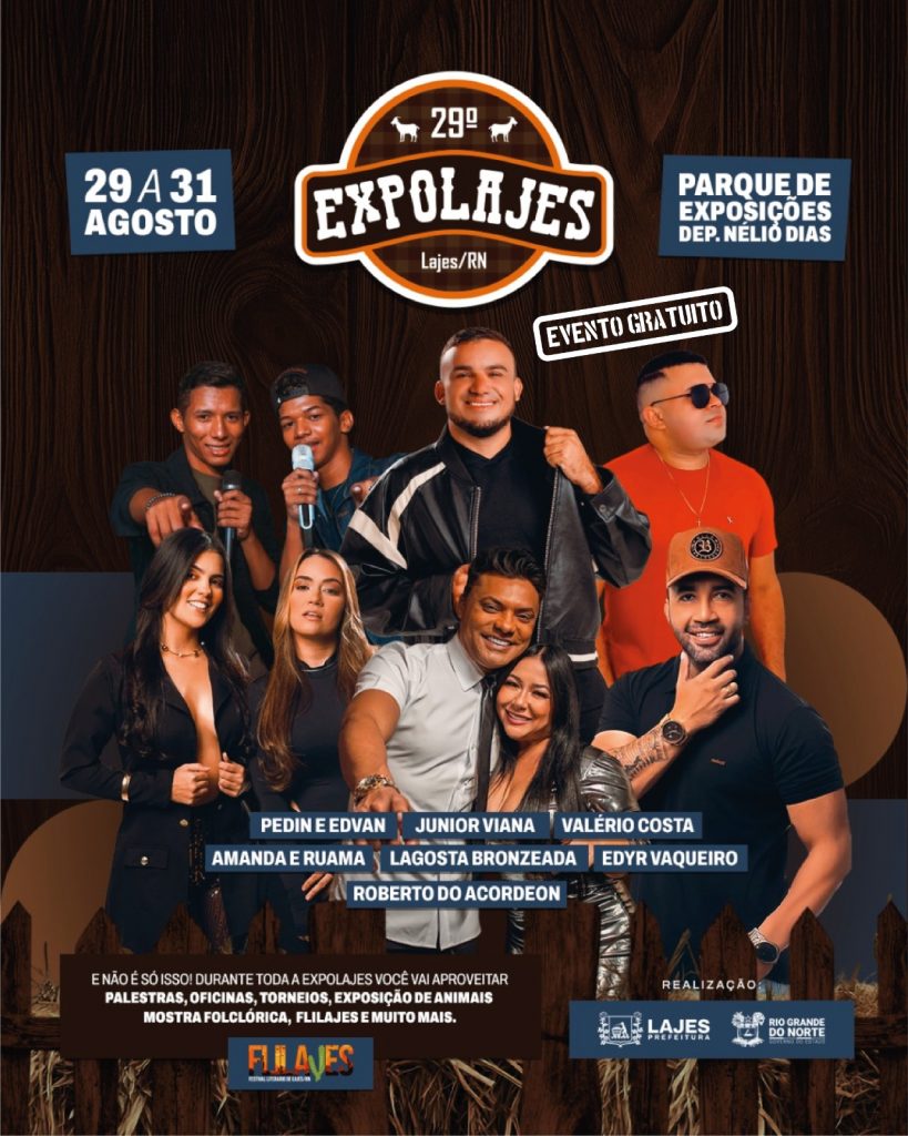 Evento realizado pela Prefeitura Municipal de Lajes, em parceria com o Governo do Estado e outras instituições, a 29ª ExpoLajes acontece neste final de semana, de sexta (29) a domingo (31), no Parque de Exposições Nélio Dias, em Lajes. A programação múltipla consagra o agronegócio como eixo de desenvolvimento econômico do Sertão Central e fortalece a cadeia da caprinovinocultura regional.