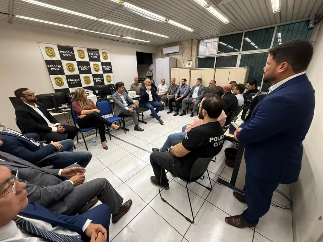 Durante a reunião, foram discutidas medidas operacionais, troca de informações de inteligência e o reforço da atuação conjunta entre forças estaduais e federais no combate ao crime organizado no RN.