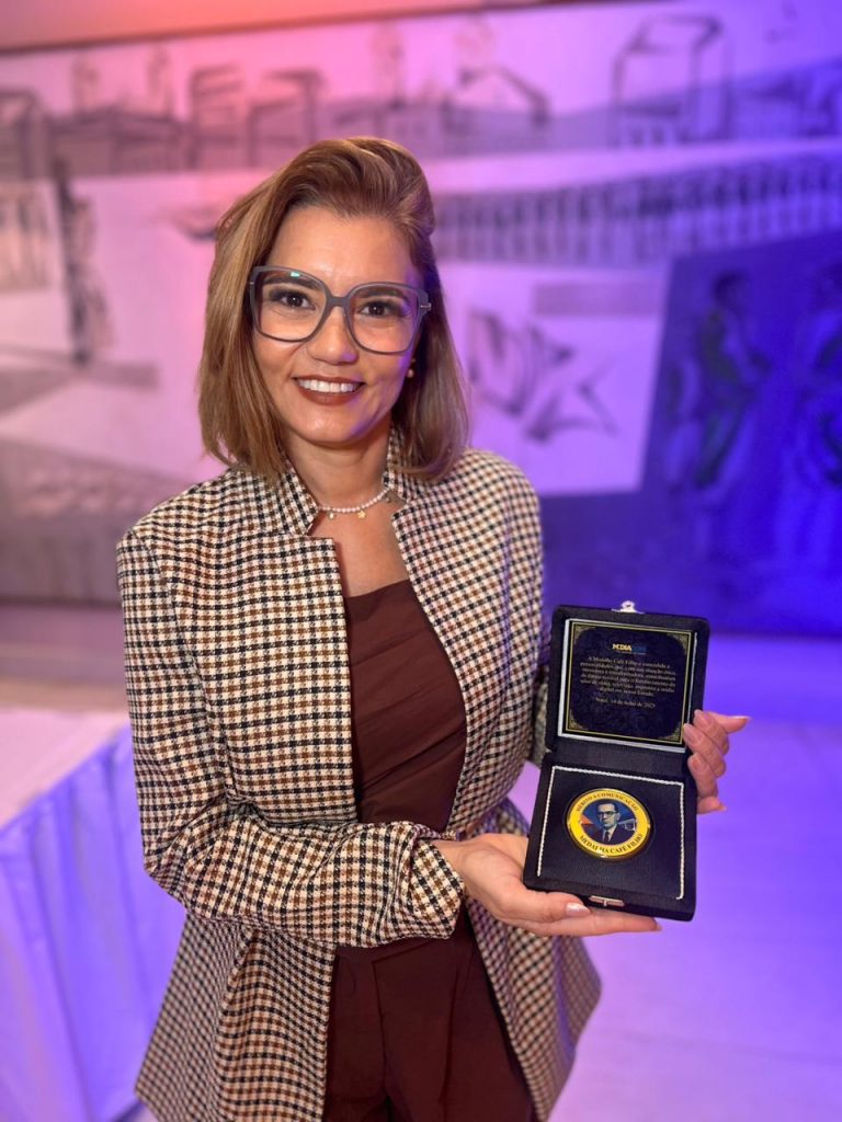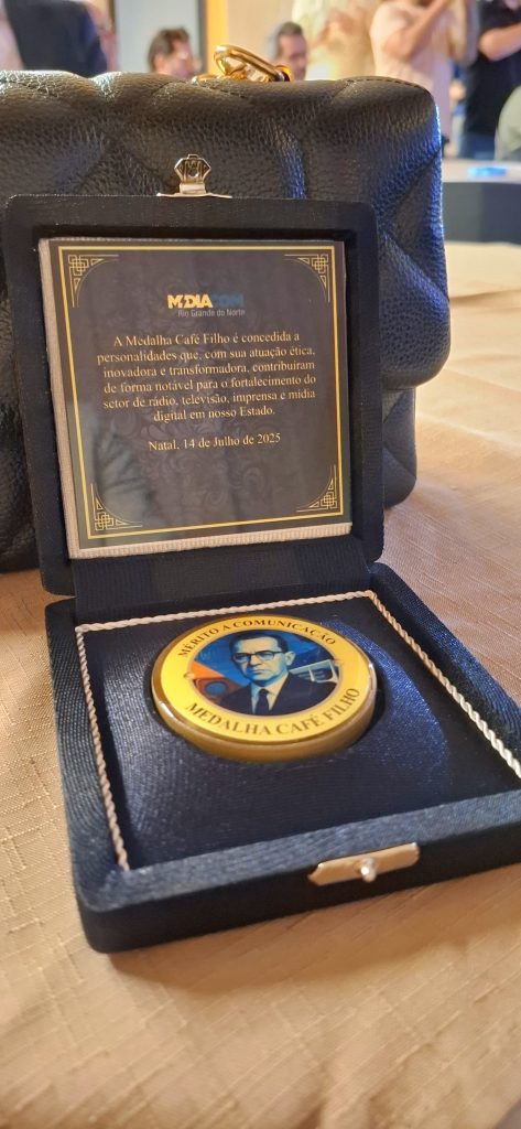Durante o evento de posse, a CEO do Grupo TCM Telecom, Stella Maris, recebeu a Medalha Café Filho, concedida in memoriam a Milton Marques de Medeiros, fundador do Grupo. A honraria reconhece personalidades que, com atuação ética, inovadora e transformadora, contribuíram de forma notável para o fortalecimento do setor de rádio, televisão, imprensa e mídia digital no estado.
