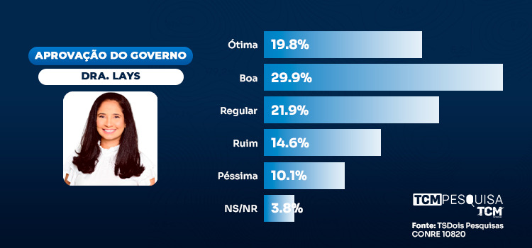 A pesquisa TCM/TSDois traz o levantamento sobre a avaliação da gestão dos 100 dias da prefeita Dra Lays à frente da Prefeitura de Pendências.