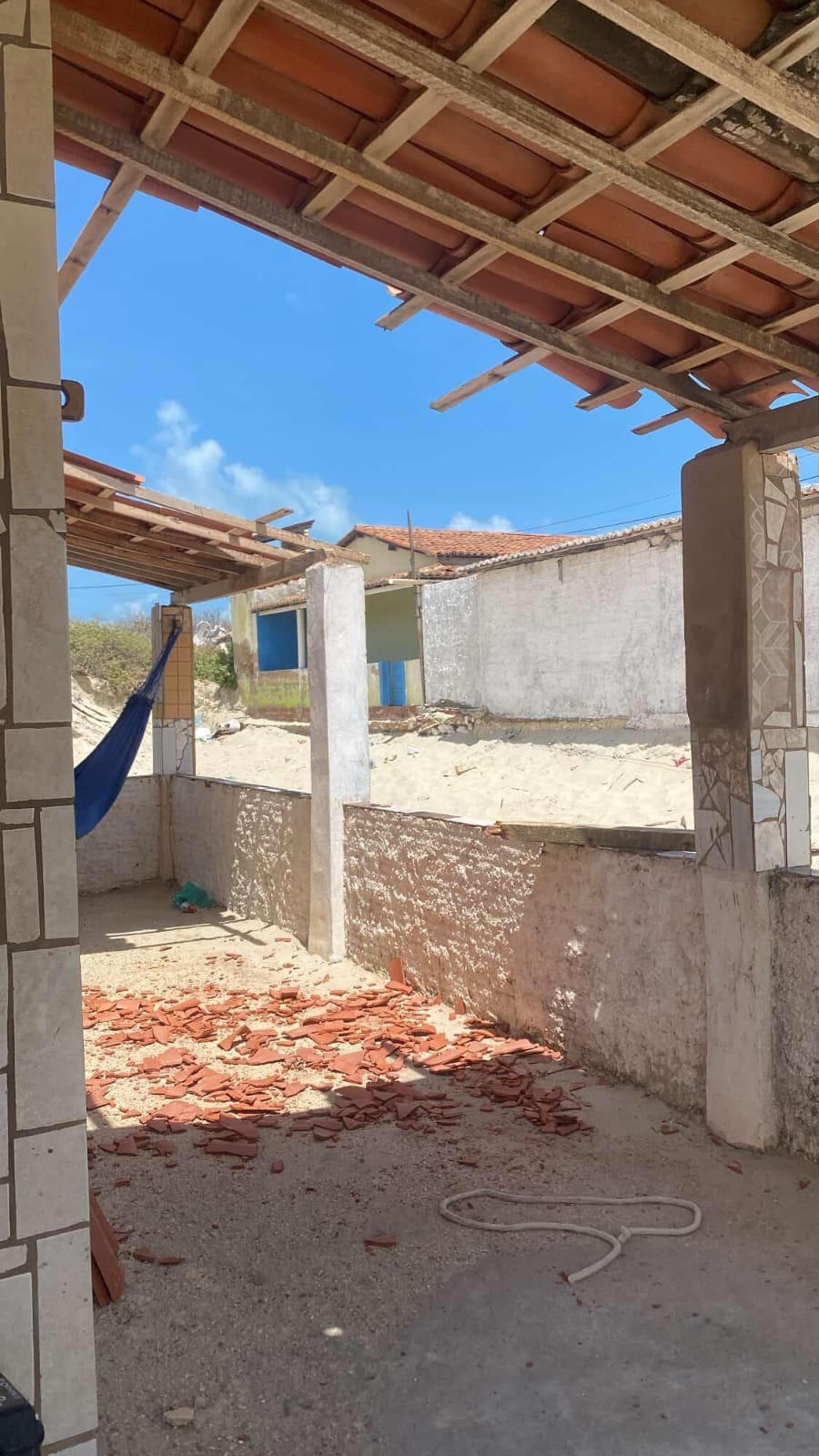 Parte do alpendre de uma residência desabou no início da tarde deste sábado (3), nas proximidades da Praia de Manibú, no Ceará, em uma área próxima ao município de Tibau.