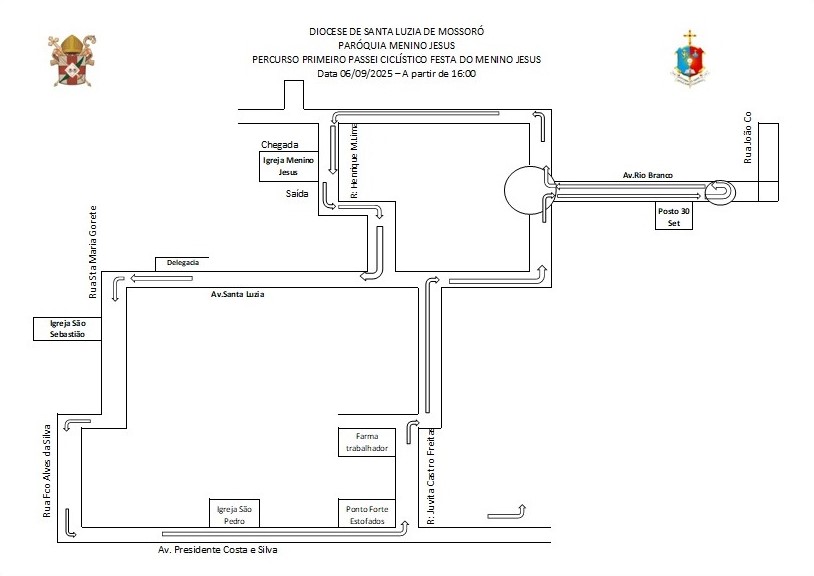 O percurso sai da Igreja do Menino Jesus, passando pela Capela de São Sebastião, na comunidade do Promorar e indo em direção à Igreja de São Pedro, no Abolição IV. Confira o trajeto completo: