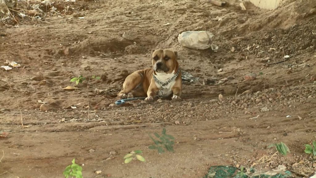 Cão da raça pitbull é encontrado sob a ponte da Barragem de Genésio, em Mossoró