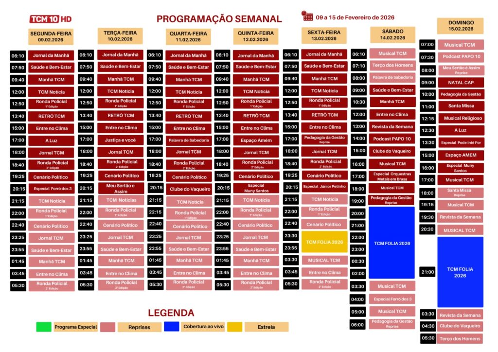 O Canal TCM 10 HD, da TCM Telecom, anunciou a grade de programação para o período de 9 a 15 de fevereiro de 2026. A programação poderá ser acompanhada pelos assinantes TCM através dos canais 10 ou 14.1. Quem ainda não é assinante pode conferir o conteúdo pelo site www.tcmplay.tv.br.