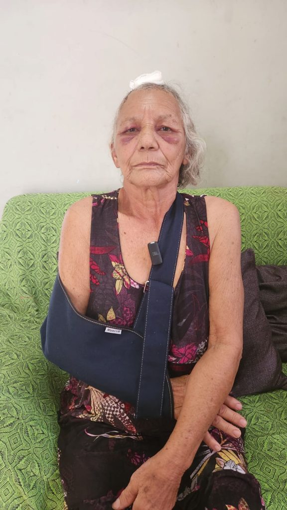 No momento do acidente, Joana Darc Alves de Freitas caminhava pela Rua São Domingos, ao lado da neta, quando uma rajada de vento repentina arremessou a estrutura no ar, atingindo diretamente a idosa, que caiu ao chão imediatamente.
