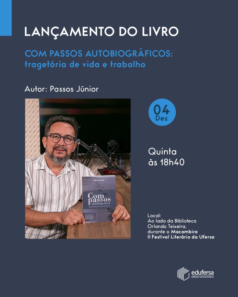 O jornalista Passos Jr decidiu encarar o próprio passado com cuidado, surpresa e a coragem de reencontrar versões de si mesmo. Dessa revisita nasceu Compassos Autobiográficos: trajetória de vida e trabalho, obra que ele lança na próxima quinta-feira, 4 de dezembro, na Pinacoteca do Estado, em Natal. O lançamento integra a programação do II Festival Literário Macambira, realizado pela EdUFERSA e pelo Banco do Nordeste, entre 2 e 4 de dezembro, no campus da universidade em Mossoró.