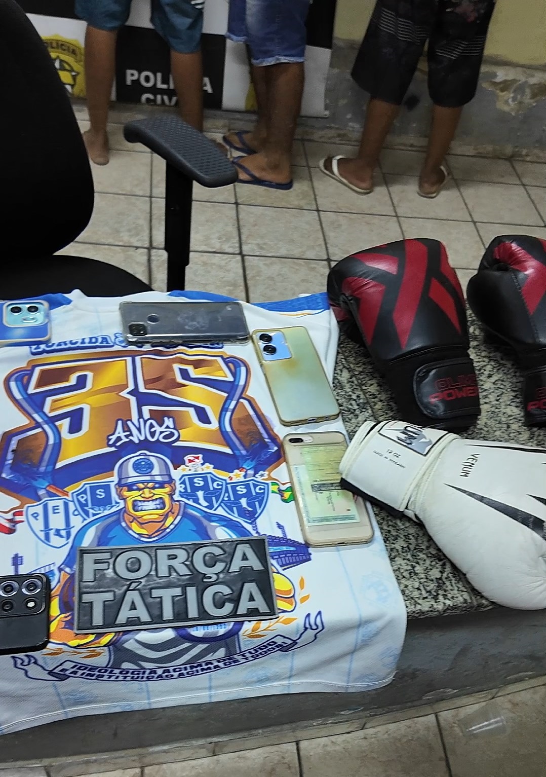 No entanto, a polícia conseguiu interceptar um veículo e conduziu seis pessoas à Delegacia de Plantão da Polícia Civil. Com elas, foram apreendidas luvas de boxe, além de camisas e outros materiais característicos de torcidas organizadas.