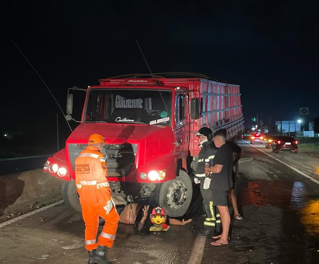 A guarnição foi acionada e encontrou o condutor embaixo da estrutura do caminhão, com mobilidade reduzida, mas consciente e orientado. Ele foi retirado com segurança e encaminhado ao Hospital Regional Tarcísio Maia.